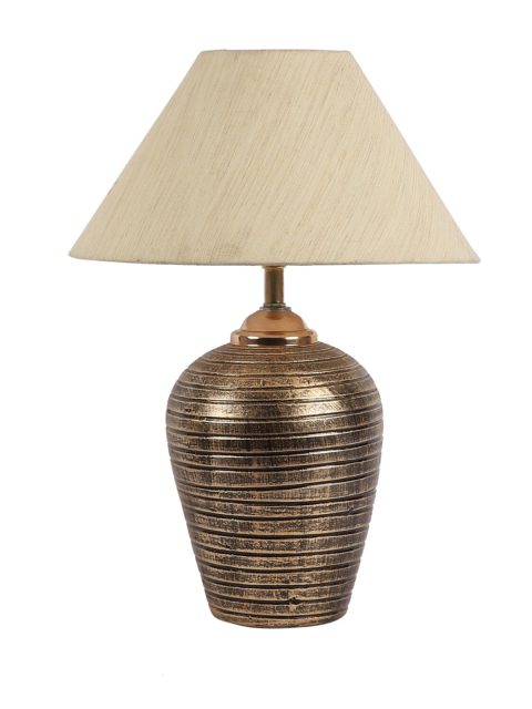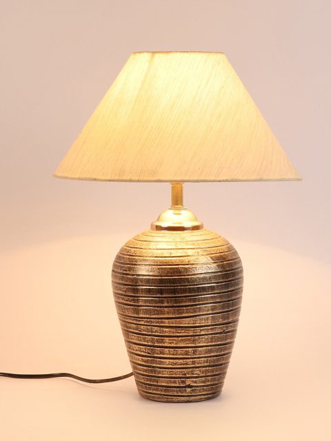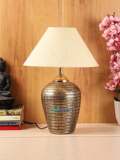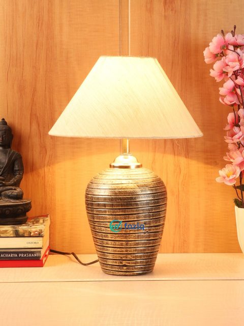 Set Content: Table Lamp Colour: WGold-coloured Pattern: Solid Material: Terracotta Assembly: Self Assembly Note: Bulb Not Included Dimension: 25.4 cm x 25.4 cm x 38 cm(Length x width x height) These captivating Table lamps from foziq are a great lighting fixture to add a beautiful and natural element to any room. Perfect for placing above your nightstand or side table beside sofa and bed. Terracotta Wipe with clean cloth softly