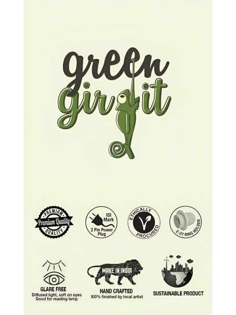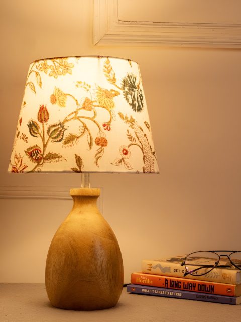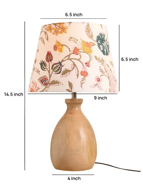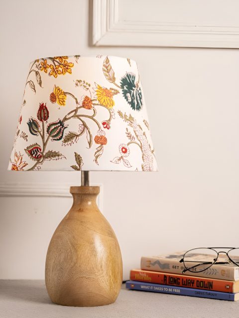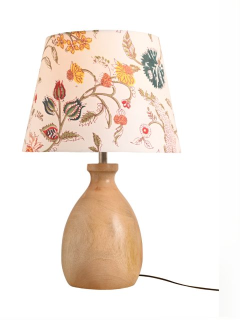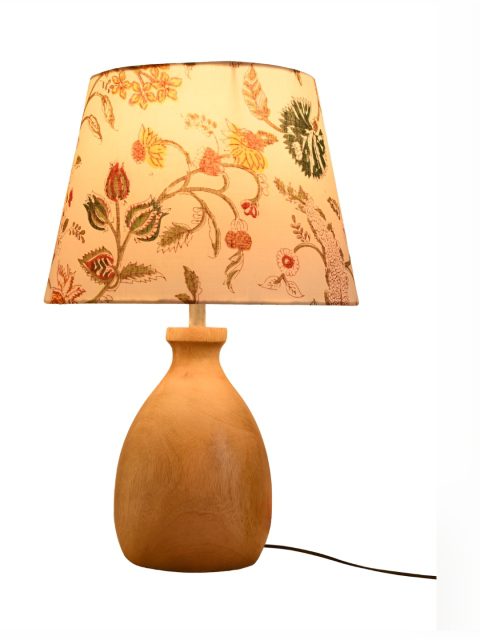 green girgit Brown & White Printed Frustum Shaped Wooden Table Lamp with Bulb