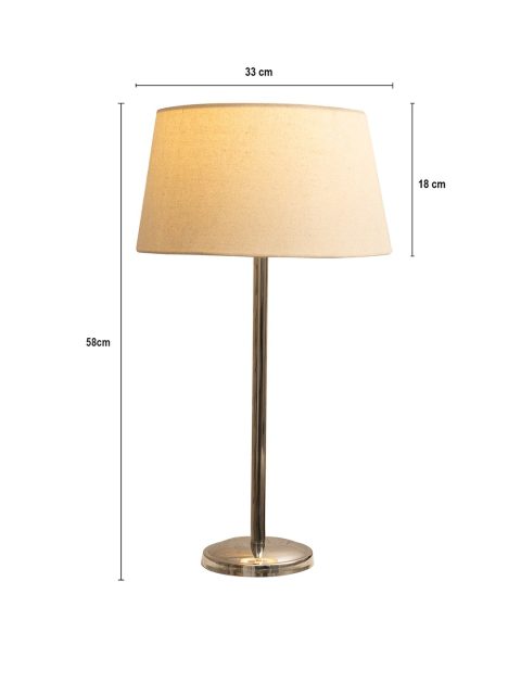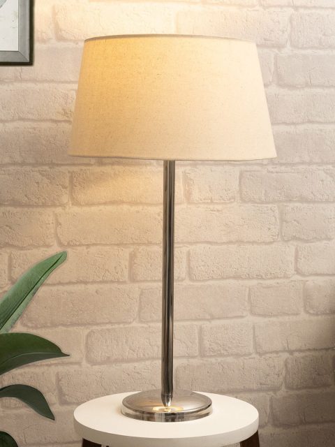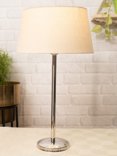Homesake Beige & Silver-Toned Solid Table Lamp With Fabric Shade