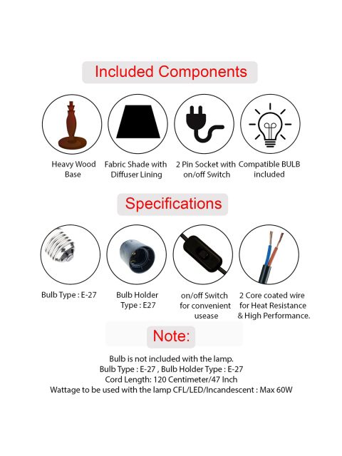 green girgit Brown & White Printed Frustum Shaped Wooden Table Lamp with Bulb