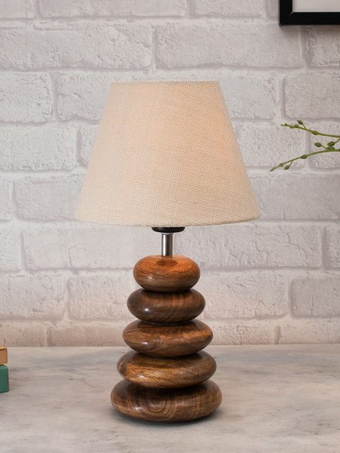 Set Content: Table Lamp Color: White & Brown Pattern: Solid Material: Metal Shape: Frustum Dimension: 20 x 20 x 39 Cm Wood Clean it with soft cotton cloth